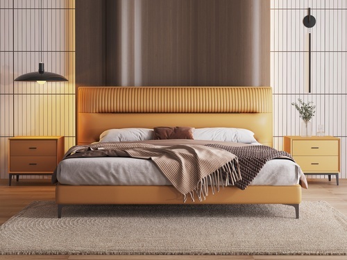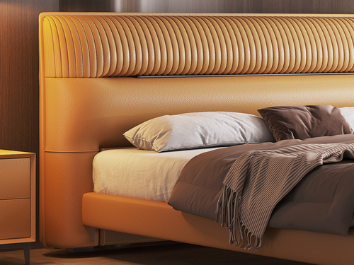 歌迪 現代簡約 優質皮藝+實木框架 暮光橙 臥室軟床(搭配10公分松木排骨架)