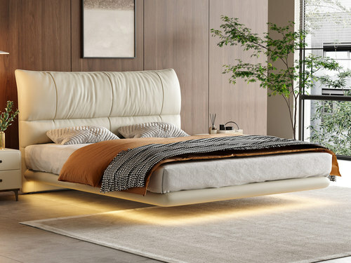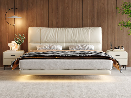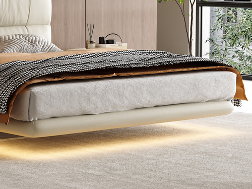 諾美帝斯 現代簡約 真皮床 高定頭層黃牛皮 厚實飽滿高密度海綿 懸浮床(搭配10公分松木排骨架)(含燈帶不含床頭櫃)
